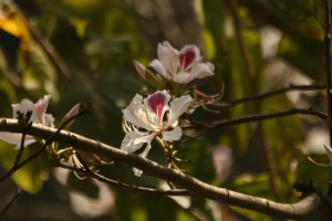 The rain poured down all night but we woke to a sunny morning, a good sign for our long drive down the Mangdechhu to Tingtibi. Clara and I were the only ones on time for the 0630 bus departure, and spotted a Rufous-breasted Woodpecker from the parking lot—it pays to be punctual! A couple of stops in the fine forests just south of Trongsa produced some nice flocks including a stunning Blue-beared Bee-eater and a Black-winged Cuckooshrike. A pair of Spotted Forktails flew up from the roadside, but proved difficult to see well, unlike the pair of Little Forktails nesting at a bridge crossing lower down towards Samcholing. Down and down we went, through the terraced paddies to the banks of the Mandechhu where the forest was brightened by many flowering Bauhinia trees. We had great looks at a Black Eagle actually soaring below us at one point! Along the Mangdechhu we reached a point where the river had been dammed somewhat by a debris flow coming in from a valley to the west, and there, on one of the few bits of calm water in Bhutan, was a Great Crested Grebe!