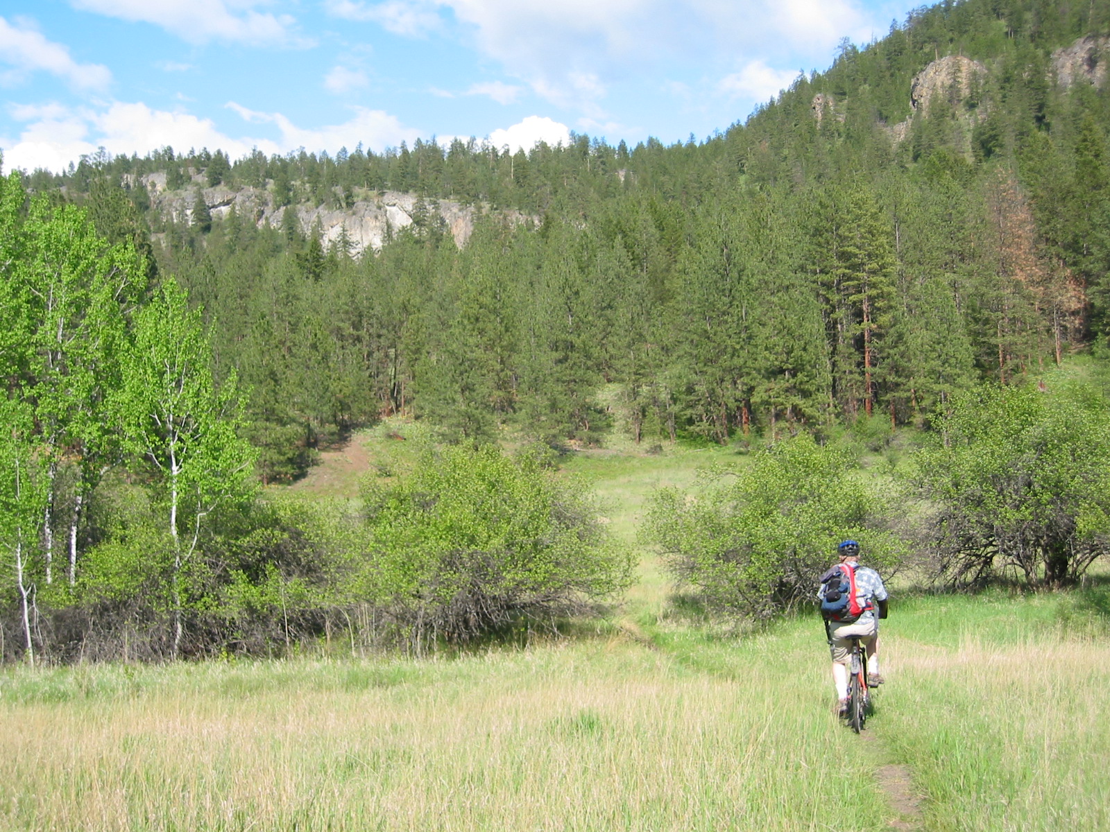 The first lake, Mahoney, immediately came through with three Green-winged Teal, so we were feeling good as we breezed down the hill to Green Lake. At first it looked empty of new birds, with only a few Barrow’s Goldeneyes, Buffleheads and Lesser Scaups, but we pushed on to the north end and were there surprised with a lovely Eared Grebe! We turned around and started back south to Willowbrook, when Martin commented that it would be nice if there were a short-cut to White Lake, which was over the mountains due west of us. I told him there was a track, though it was rather rough and involved a fair bit of climbing. We looked at each other, and decided on the spot to give it a try—at least it might produce a woodpecker or two. As we prepared for the climbing part of the trail by removing our long pants and long sleeves, a White-breasted Nuthatch obligingly flew in to be counted. That was species number 127 for the day, only three away from 130, a very respectable tally for an unassisted bike trip.