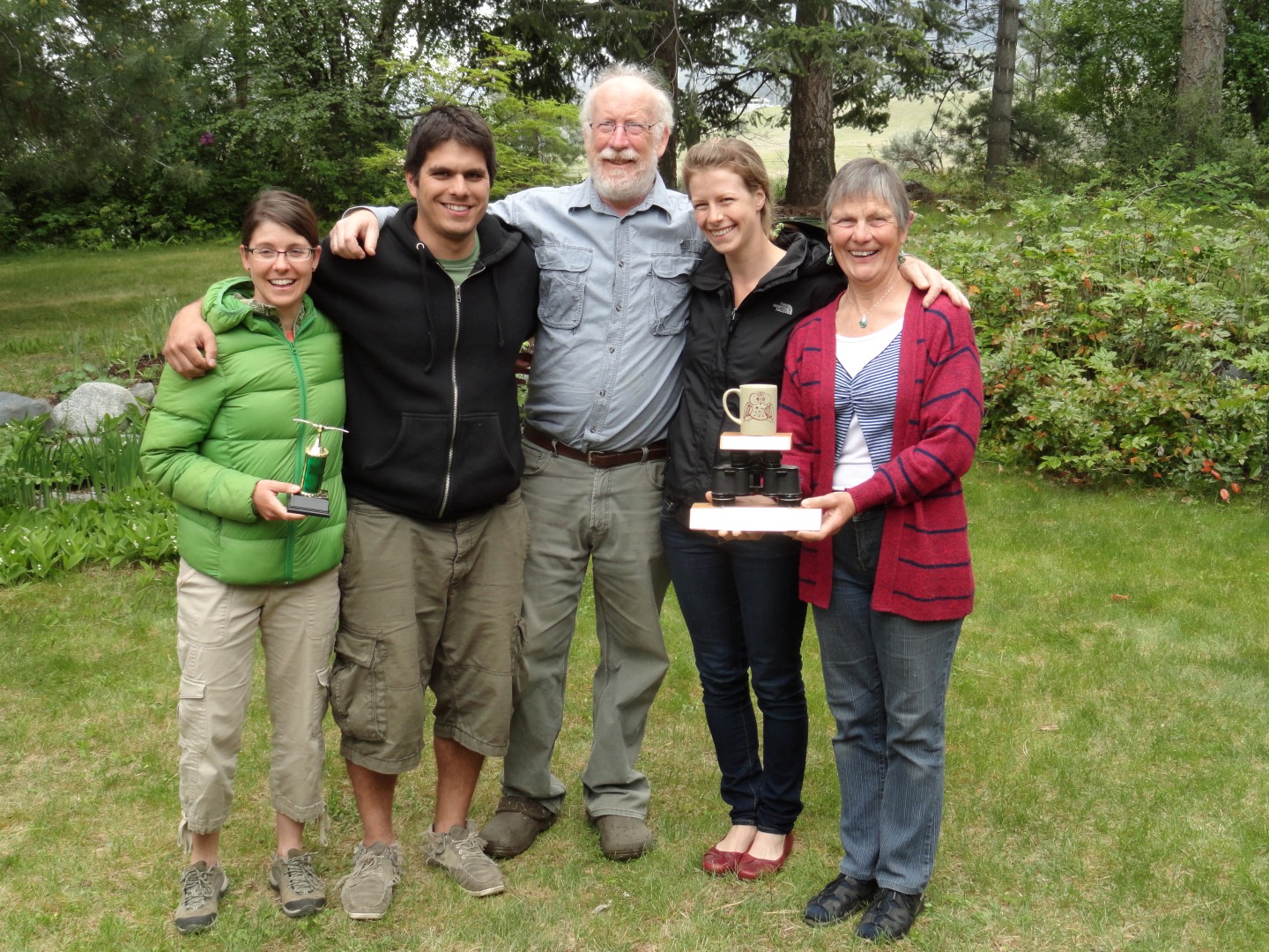 By 9:30 the house was full of birders again as the 28 participants in the Okanagan Big Day Challenge gathered to tell stories of their adventures. Doug Brown and Doug Ghrist–who had driven around the Oliver-Osoyoos Christmas Bird Count circle–came out on top with 133 species. The Green Team award for best non-motorized transport day was a very close affair–but after several judicial recounts the Vireos were declared winners over the Chafing for Chickadees–126 to 125. The Wilson’s Warblers of Kelowna came up with the bird of the day–a White-faced Ibis at the mouth of Mission Creek–and the Shuttleworth Shufflers got the Sour Grapes Award for missing Rock Pigeon. A great day, great fun, and thousands of dollars raised for the Vaseux Lake Bird Observatory–you can follow our fund-raising totals (and donate yourself if you like) by clicking here, then clicking on one of names of the team members.