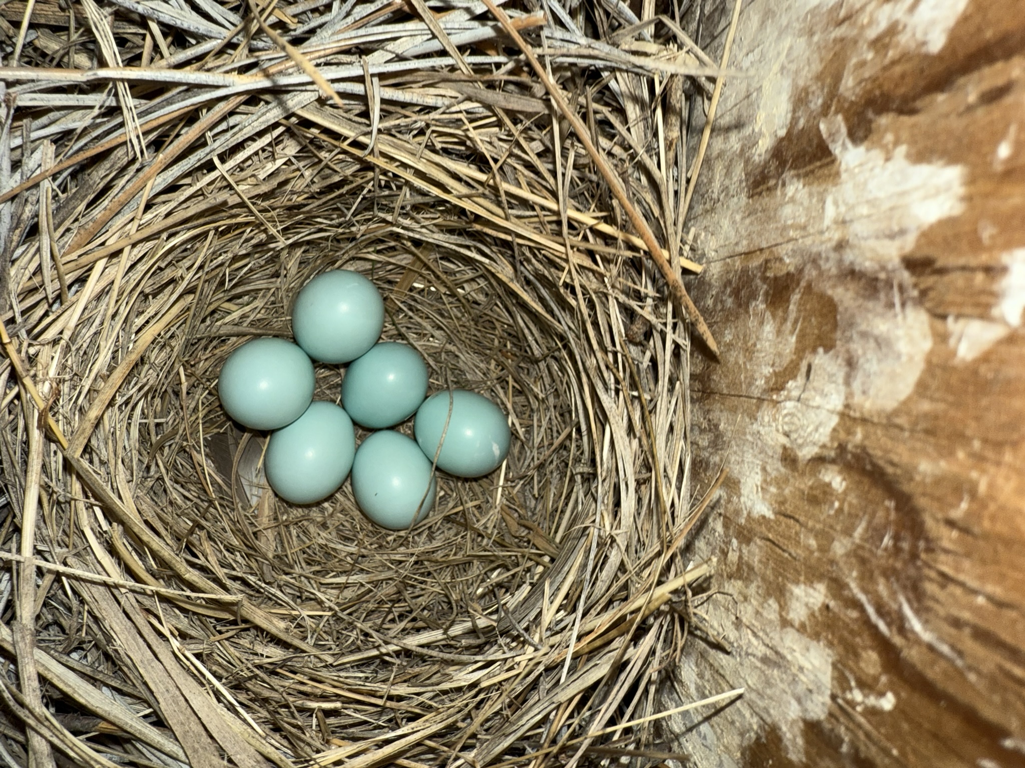 We checked the Okanagan Lake waterfront, but it was just as wild as the waves on Skaha Lake and there was nothing new in sight. Our last ploy was to go to the Great Horned Owl nest on Westminster Avenue that Alex Bodden had told us about, and at 8:35 we saw the big nestling there. Happy that we’d got a respectable species total and very satisfied with a very enjoyable day, we pumped up the West Bench Hill (very thankful to be on an ebike at that moment!). Near the top of the hill, a cacophony of robins drew our attention to a big blob atop a birch tree—another Great Horned Owl!