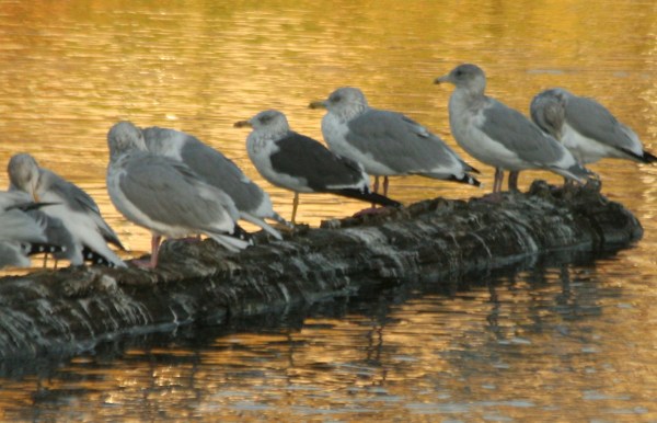 Lesser Black-backed Gull with California, Herring and Glaucous-winged gulls, Penticton, BC, 29 Oct 2011